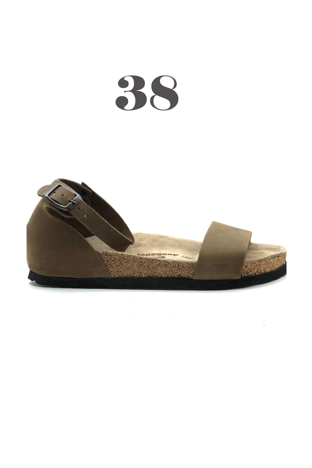 Bahama Hakiki Deri Mantar Taban Ortopedik Kadın Sandalet -Crazy Haki-38125