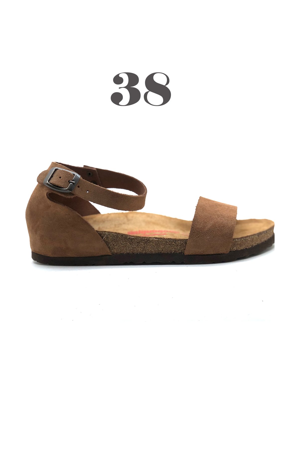 Bahama Hakiki Deri Mantar Taban Ortopedik Kadın Sandalet -Süet Kahve-38143
