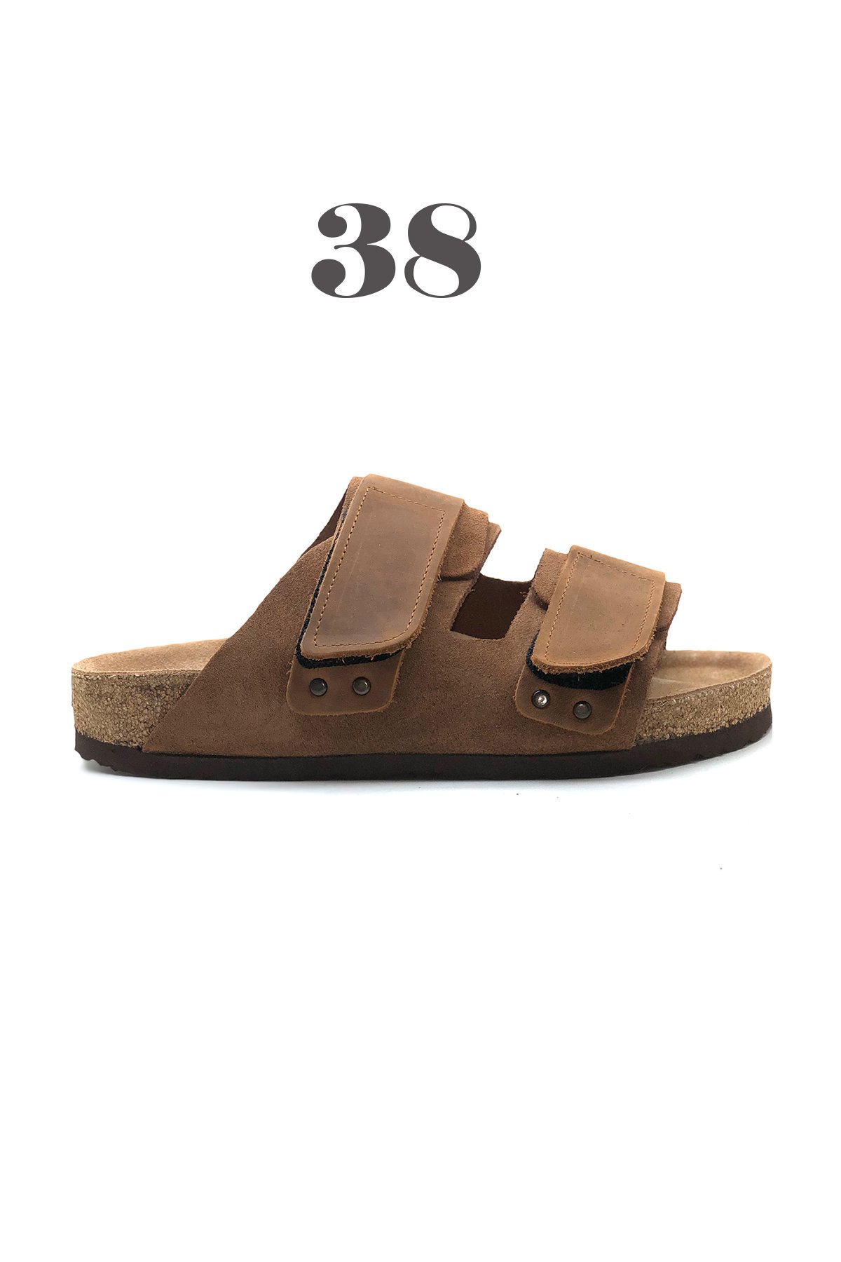 Damascus Hakiki Deri Mantar Taban Ortopedik Unisex Terlik - Crazy Taba-38128