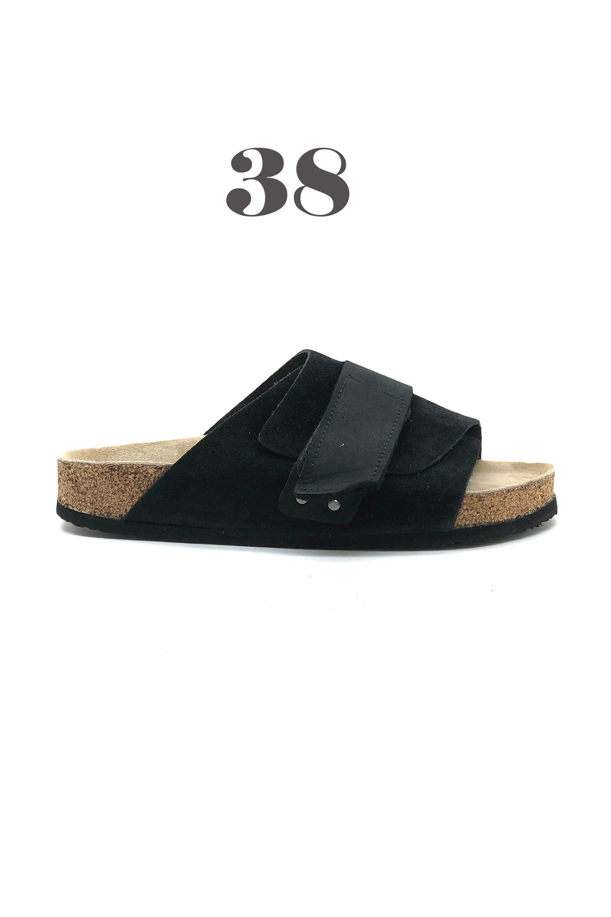 Kiev Hakiki Deri Mantar Taban Ortopedik Unisex Terlik - Siyah-3877