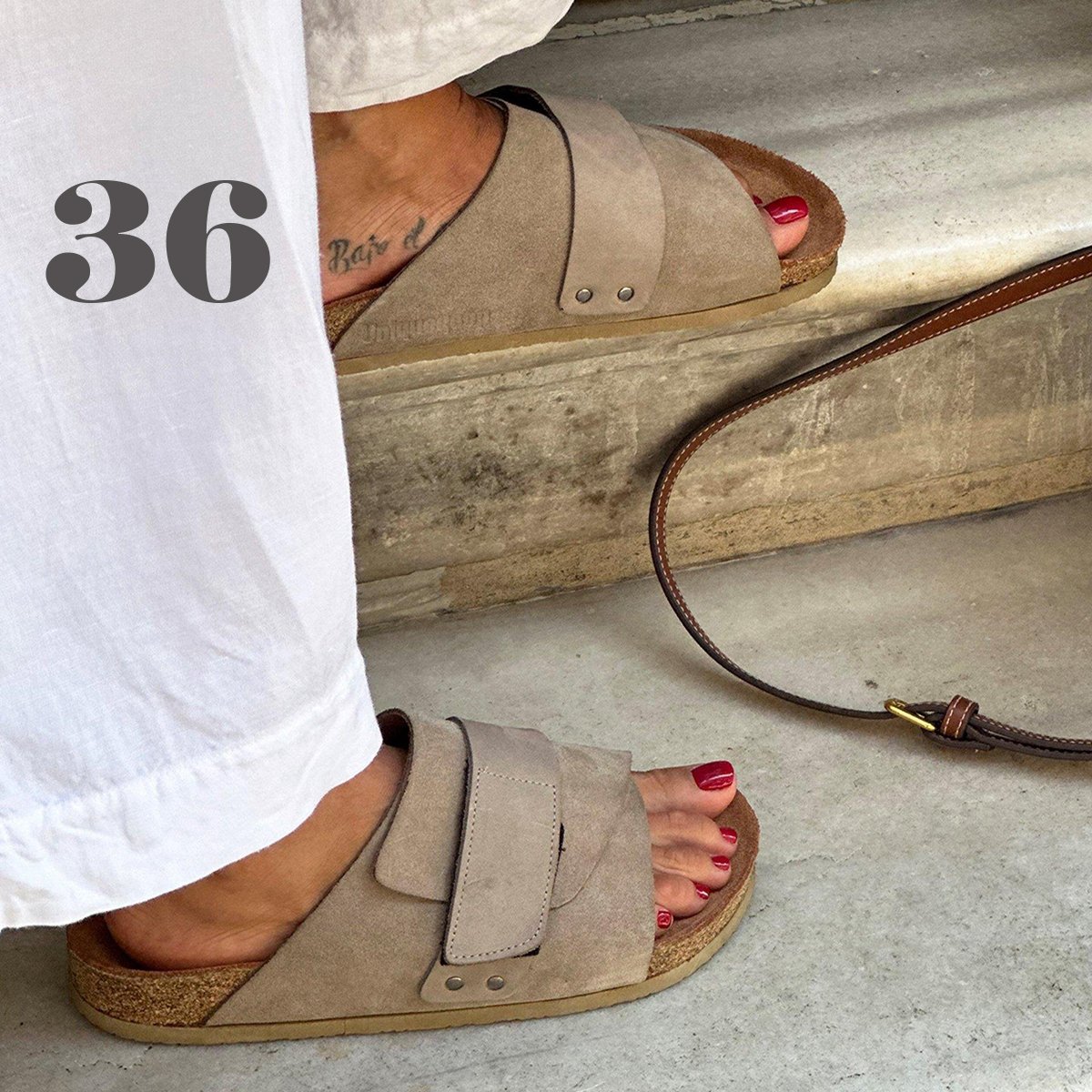Kiev Hakiki Deri Mantar Taban Ortopedik Unisex Terlik - Taupe-3648