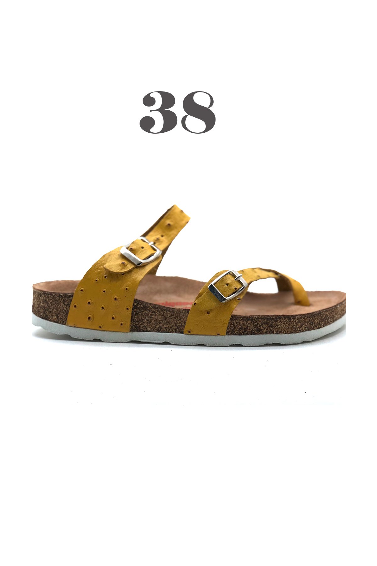 Lisbon Hakiki Deri Mantar Taban Ortopedik Parmak Arası Kadın Terlik -Hardal-38139