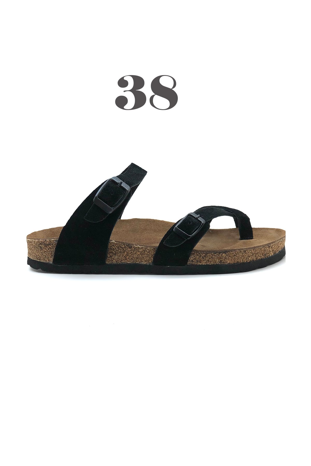 Lisbon Hakiki Deri Mantar Taban Ortopedik Parmak Arası Kadın Terlik - Süet Siyah-38116