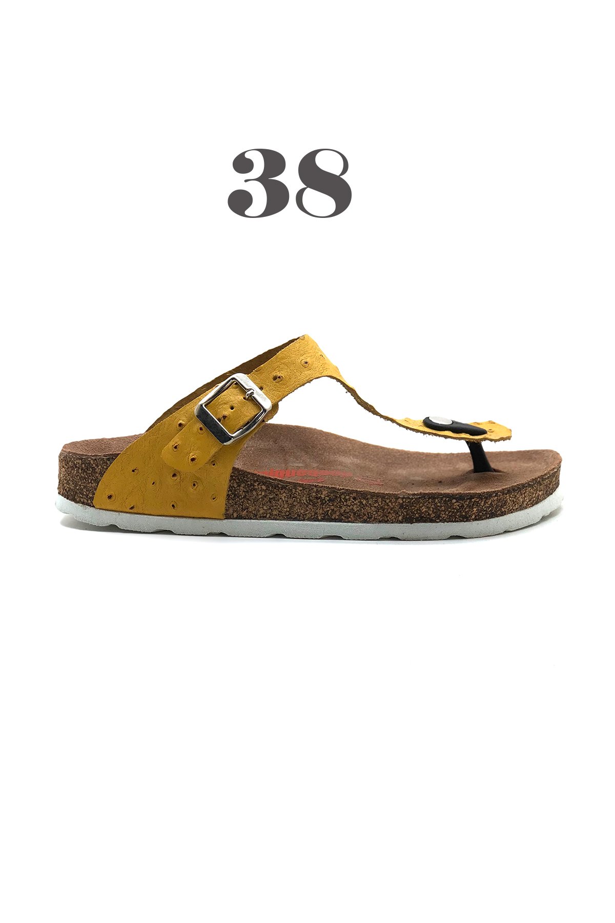 Madrid Hakiki Deri Mantar Taban Parmak Arası Terlik - Hardal-38100