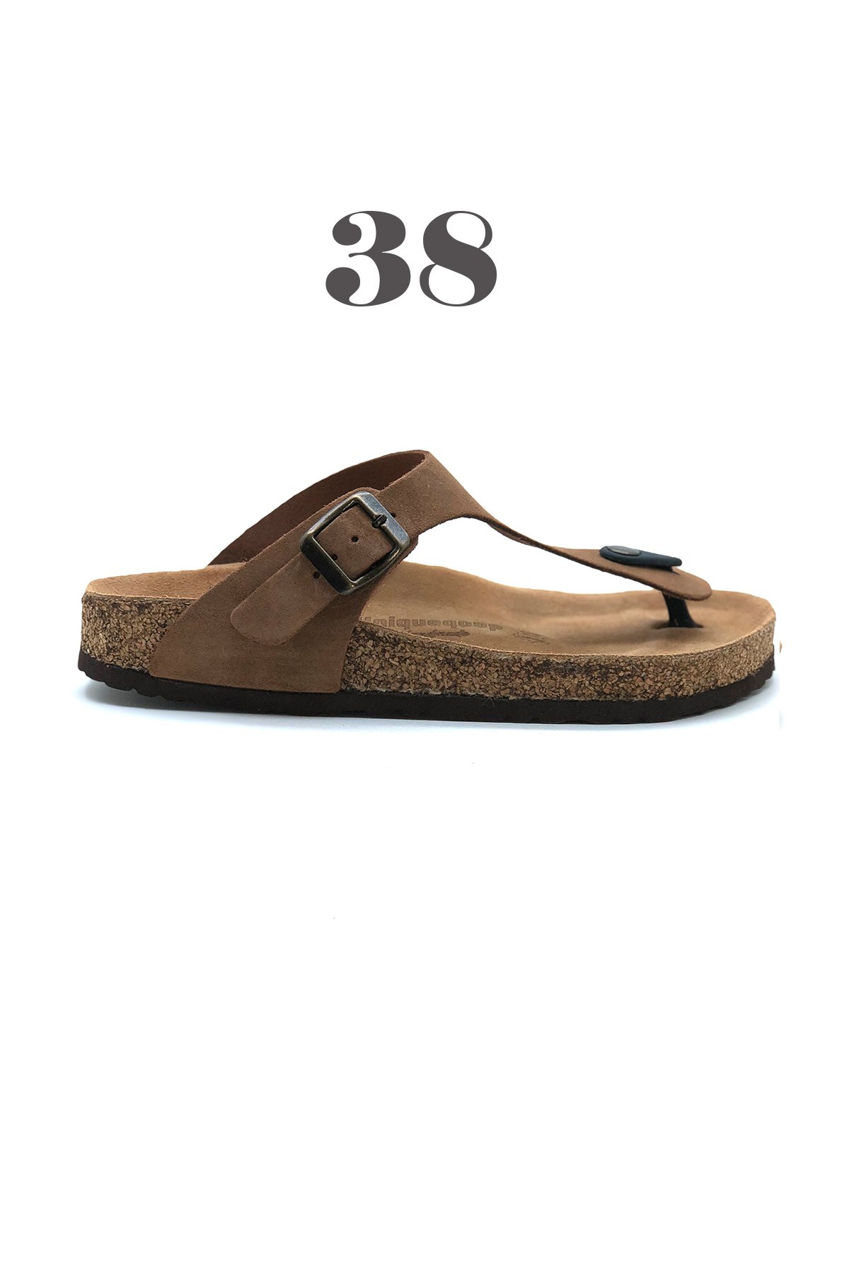 Madrid Hakiki Deri Mantar Taban Parmak Arası Terlik - Süet Taba-3862