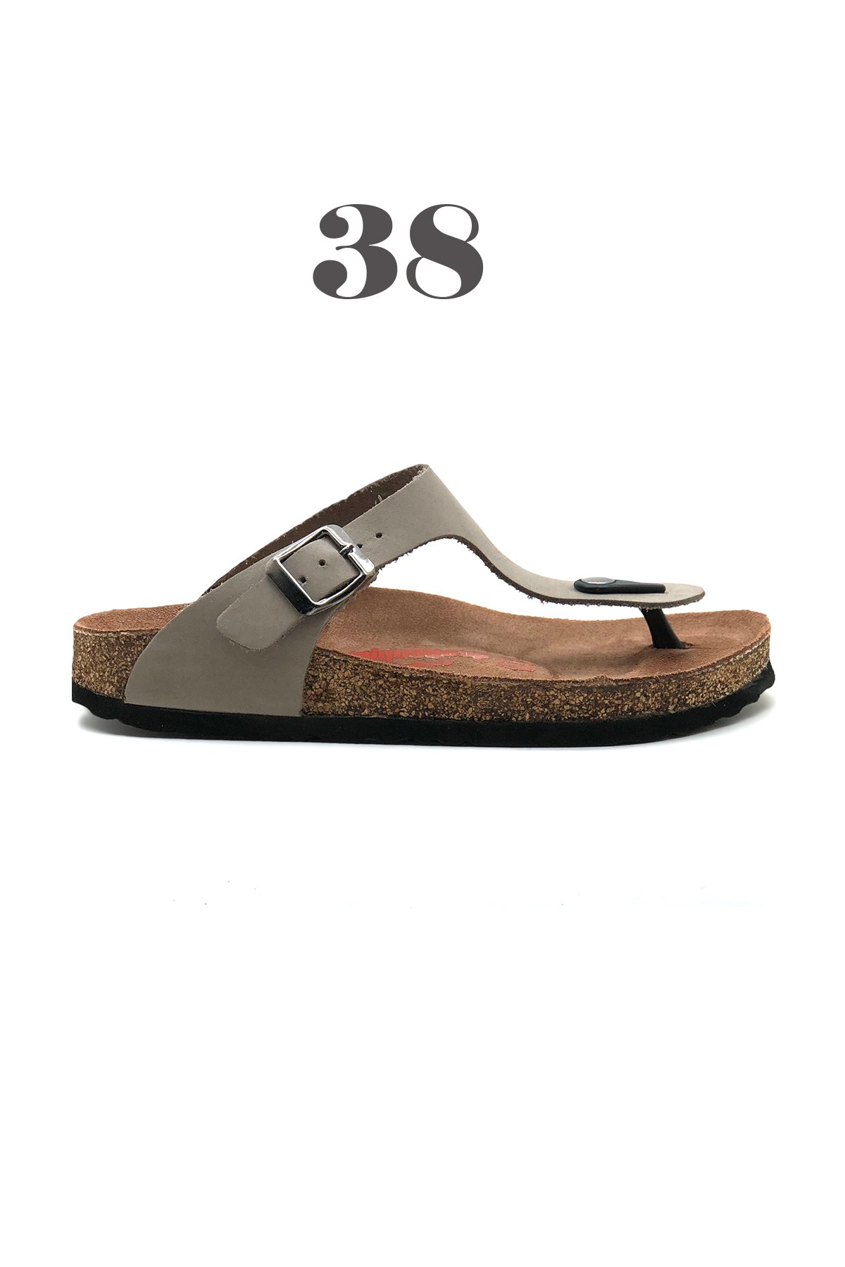 Madrid Hakiki Deri Mantar Taban Parmak Arası Terlik - Taş Rengi-38142
