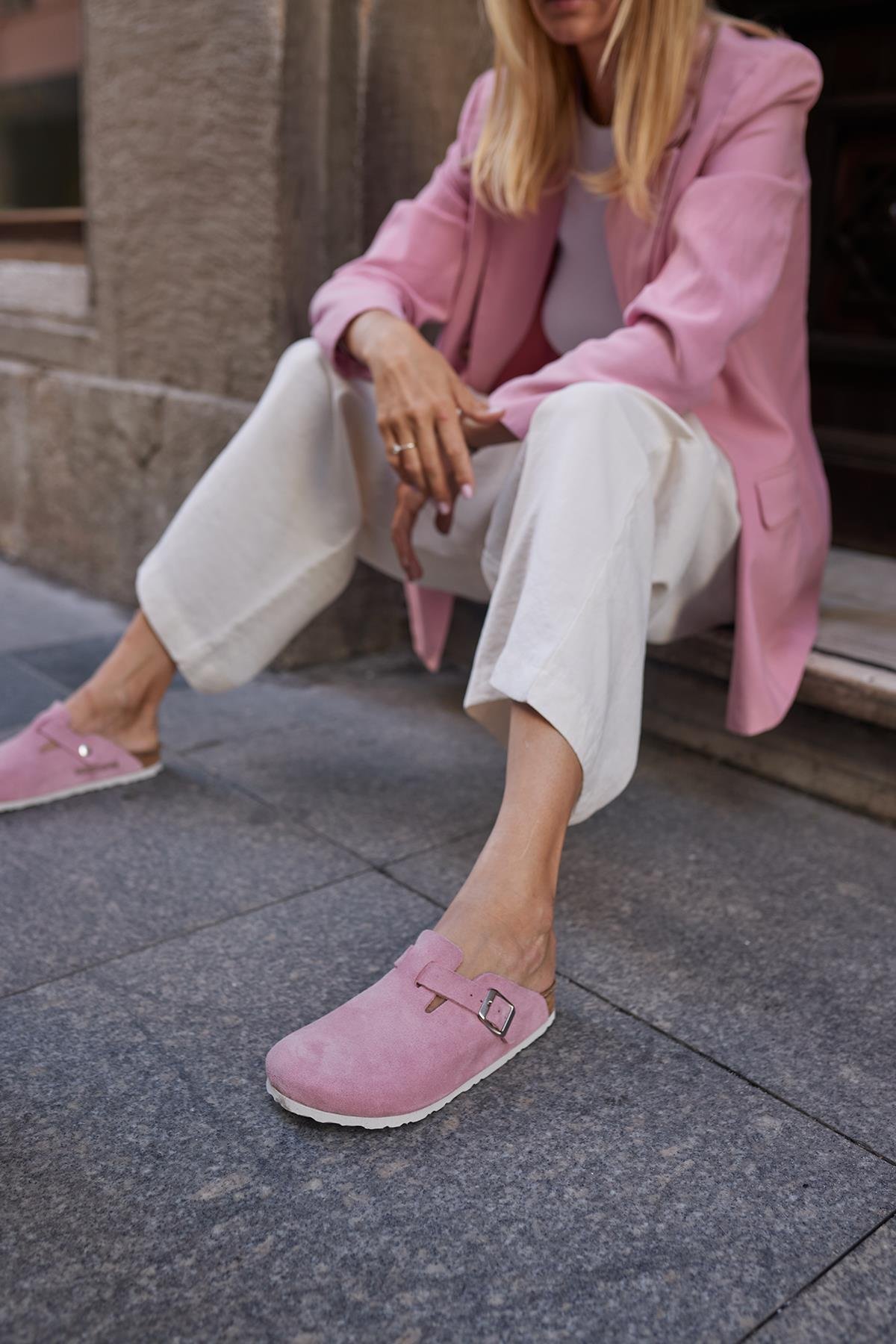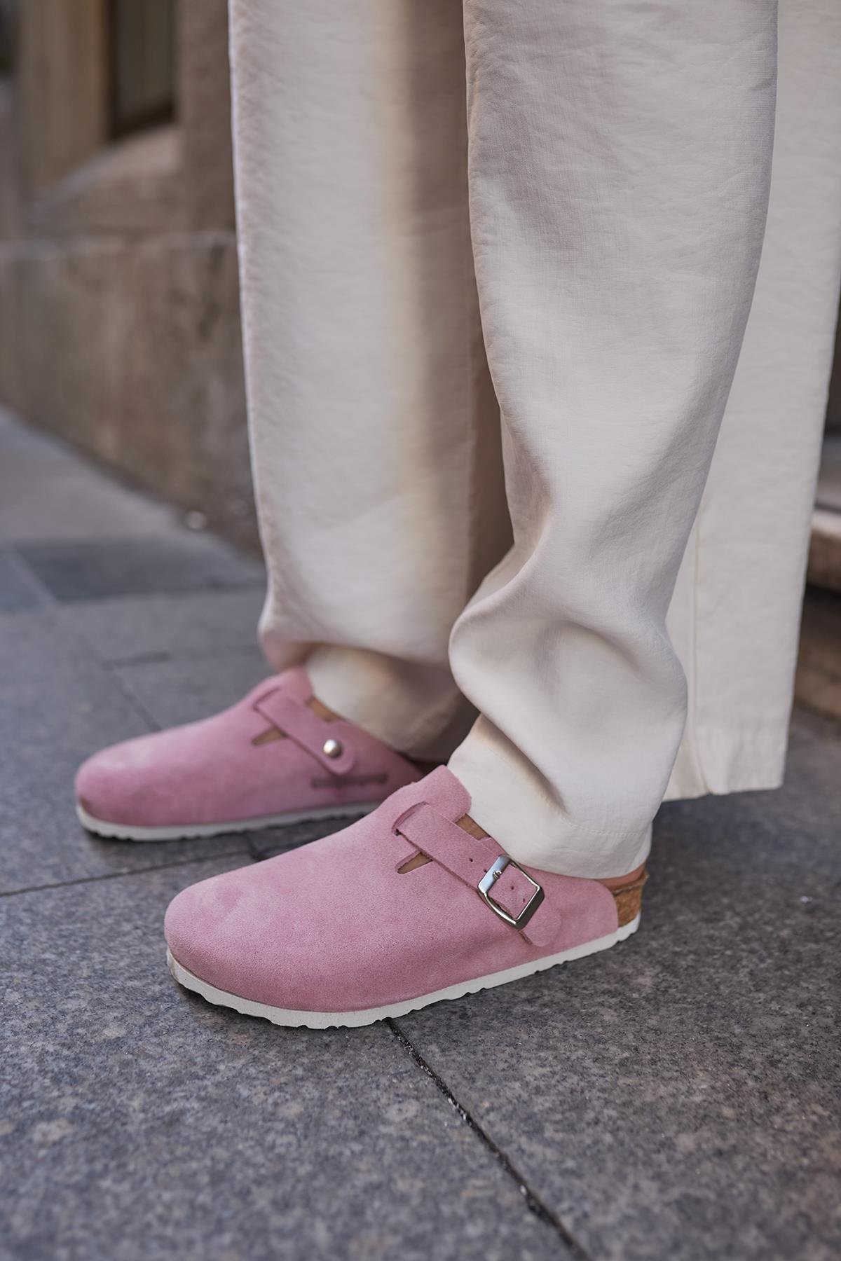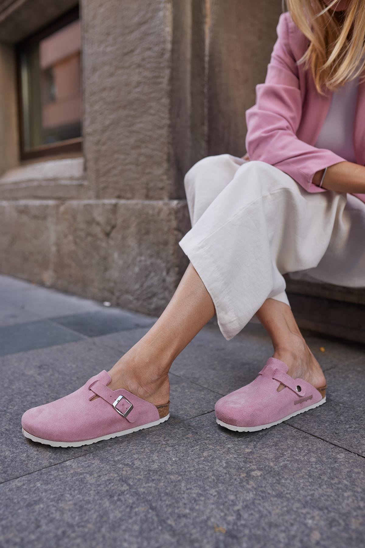 Oslo Hakiki deri Mantar Taban Ortopedik Unisex Terlik - Pembe Süet