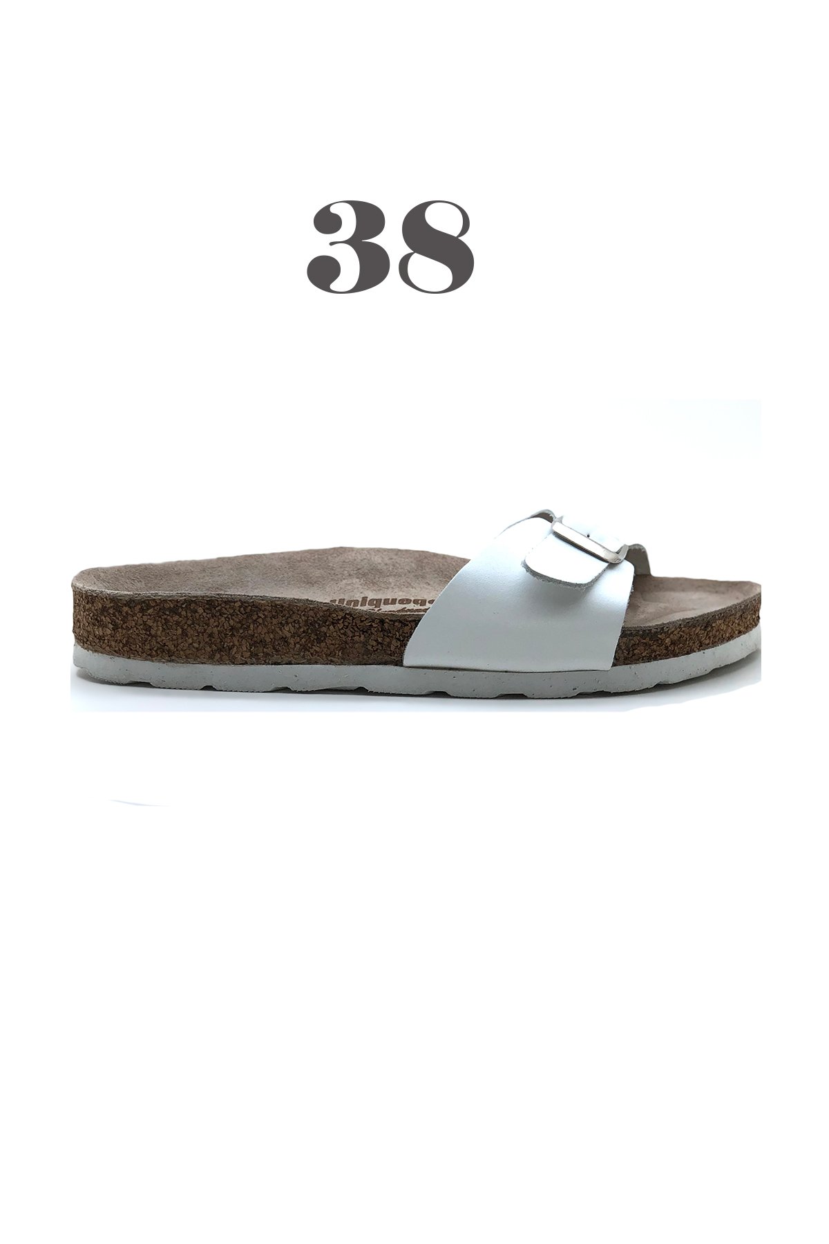 Rio-S Hakiki Deri Mantar Taban Ortopedik Kadın Terlik (Beyaz)-38121