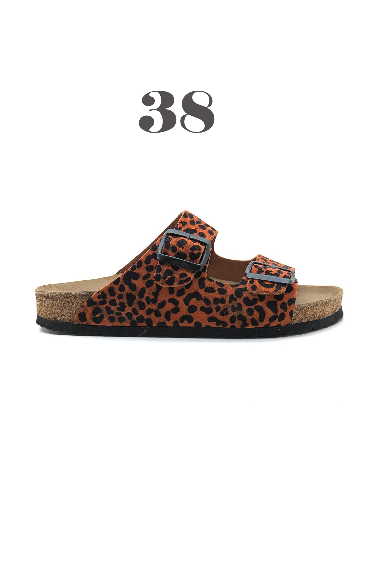 Tokyo Hakiki Deri Mantar Taban Ortopedik Terlik - Turuncu Leopar-3897