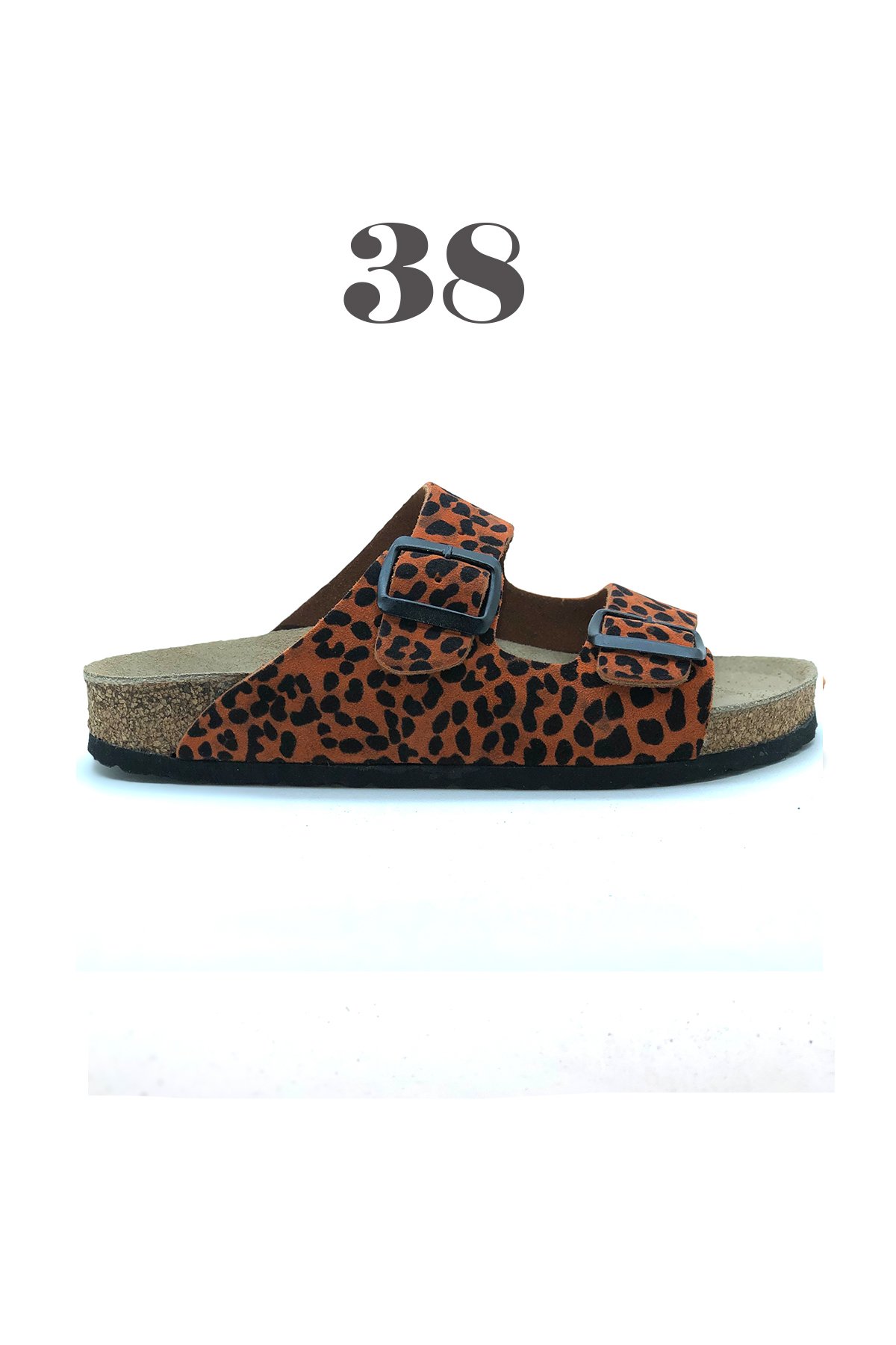 Tokyo Hakiki Deri Mantar Taban Ortopedik Unisex Terlik - Süet Turuncu Leopar-3820-21-22-29